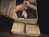 Accompanying Anne’s series of paintings are ‘The Little Mnemonic Bookworks’, which provide archival evidence of the drawings, source images and texts embedded in each of the larger paintings.