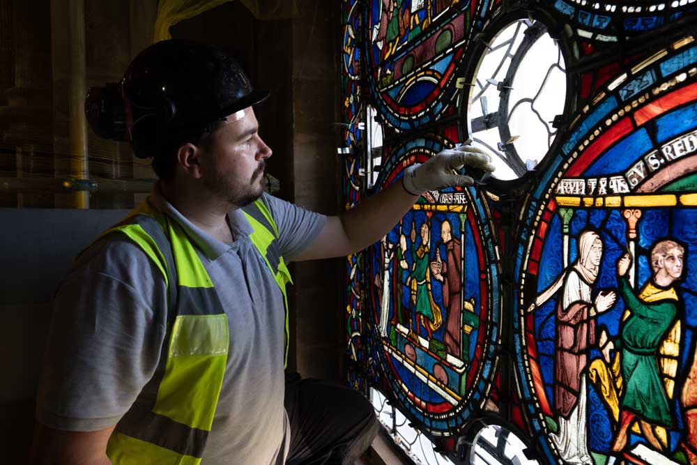 Close examination of the glass in the Cathedral’s conservation studio has led to fascinating new insights about the medieval people whose stories are portrayed in the windows and also the glaziers who made them.