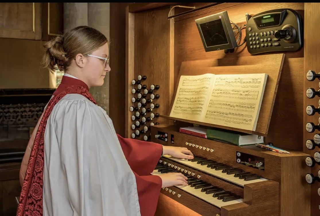 In her spare time, she is also a composer: her ‘St George’s Fanfare’ and ‘Prelude on Stille Nacht’ have been published by Encore, and her ‘Trio in C Minor’ has been published by the AGO. She is currently taught by Ann Elise Smoot and Stephen Farr.