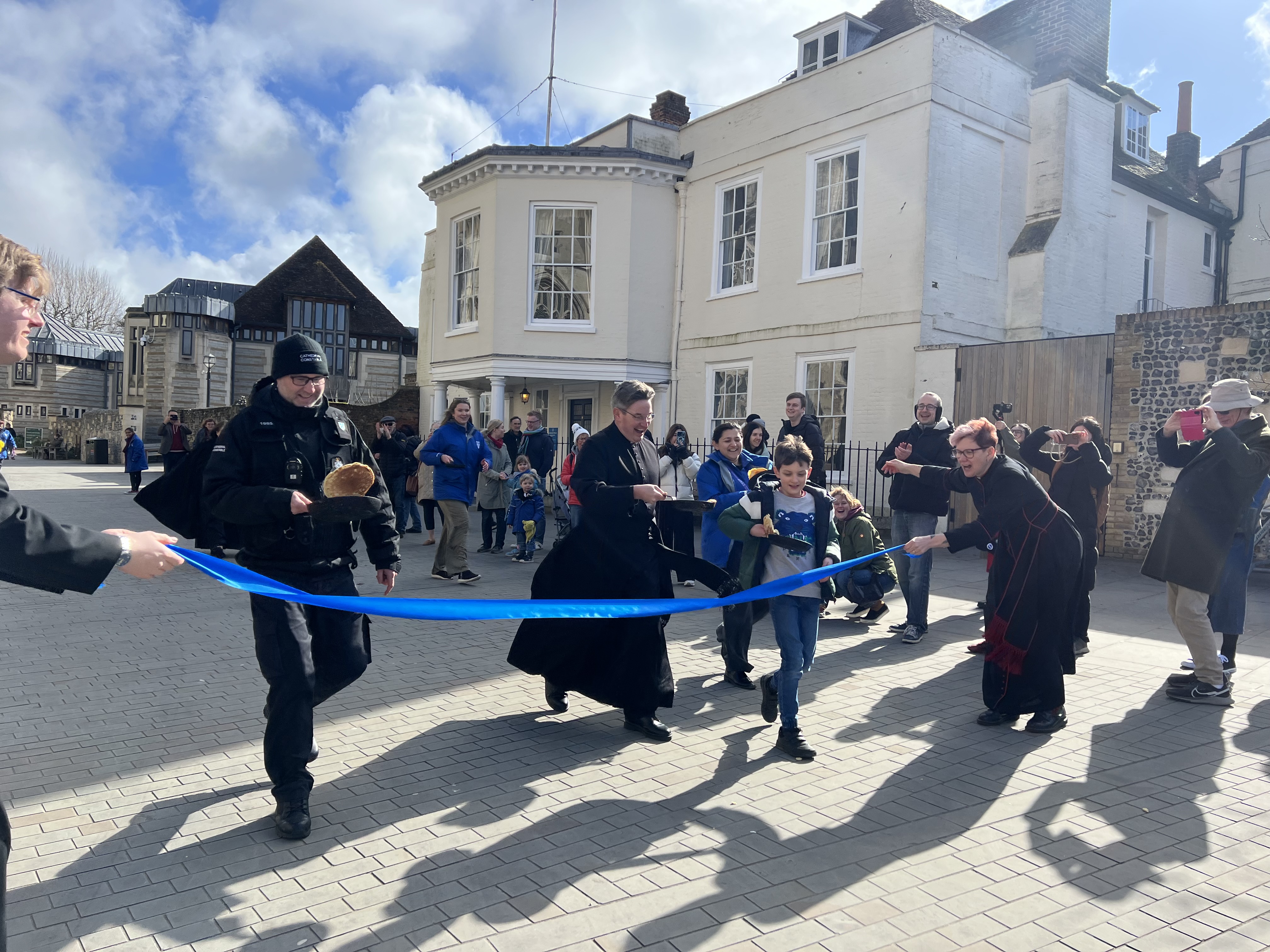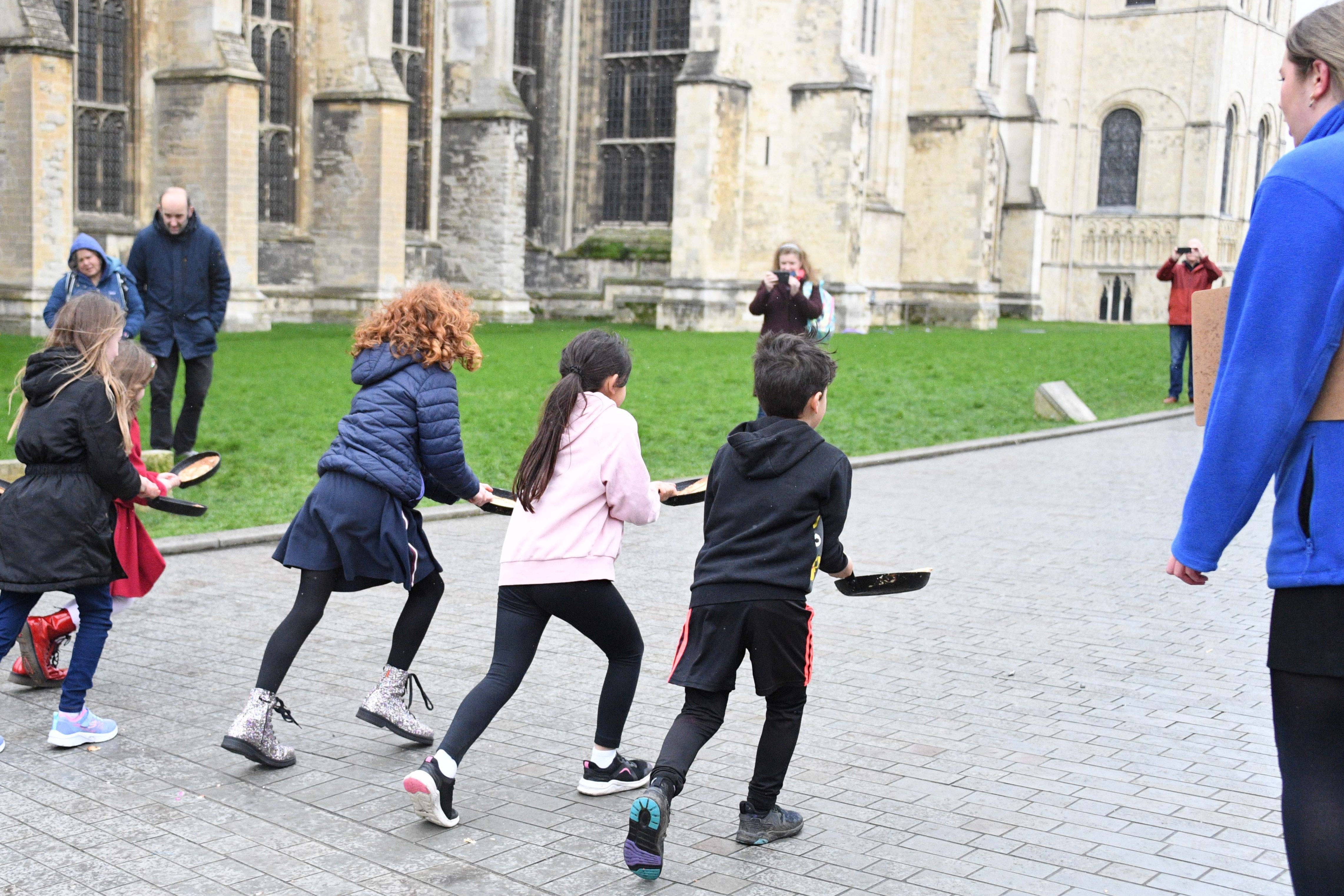 Take on other visitors, for a pancake race in the Cathedral Precincts!