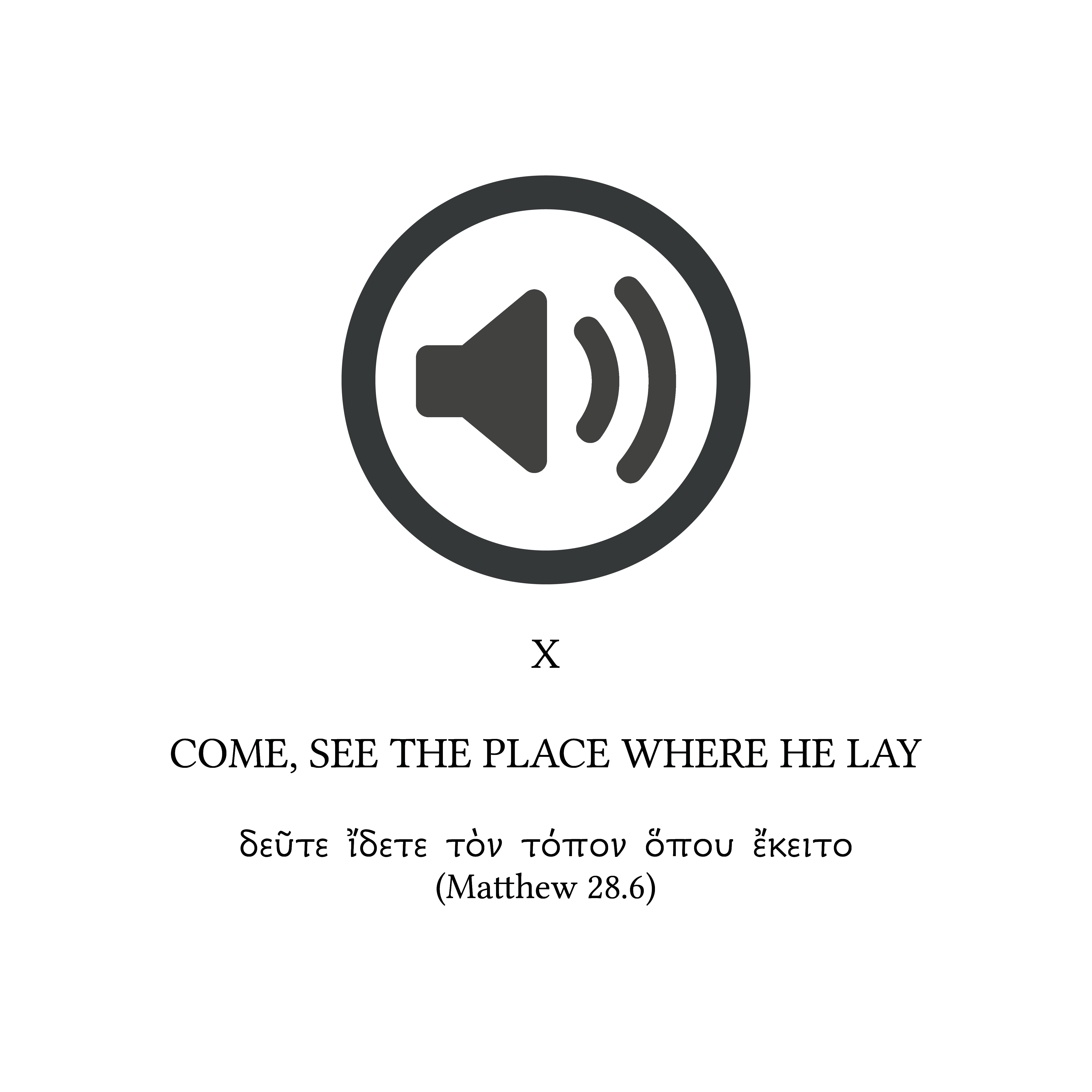 In approaching the Passion narratives for this project, I began where I had left off: with the Greek text of the Gospels. The uncomfortable intimacy of working at such close quarters with these accounts of Jesus’s suffering, death and resurrection is what gave rise to the form of the resulting poems. Each begins with a phrase from one of the Gospels, quoted in English and in Greek. The lines that follow draw on this phrase, or on a single word which may have more than one meaning, or on another word or phrase it evokes from another text. Where relevant, such words are noted at the foot of the page. I have drawn widely from passages elsewhere in the Bible that intersect with the themes of each Station.